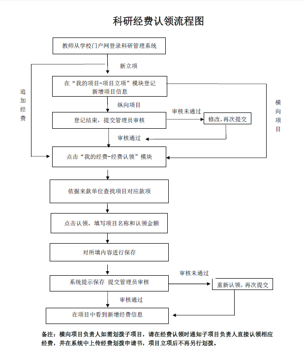 为适应科研经费信息化管理要求,提高科研经费管理效率,经科技处与计财处的多次对接与数据调试,学校决定自2016年12月5日起,由教师通过学校科研管理系统认领科研经费:教师登陆校园门户网内的科研管理系统,利用“项目经费”模块进行科研经费的认领与确认工作(后附具体流程)。