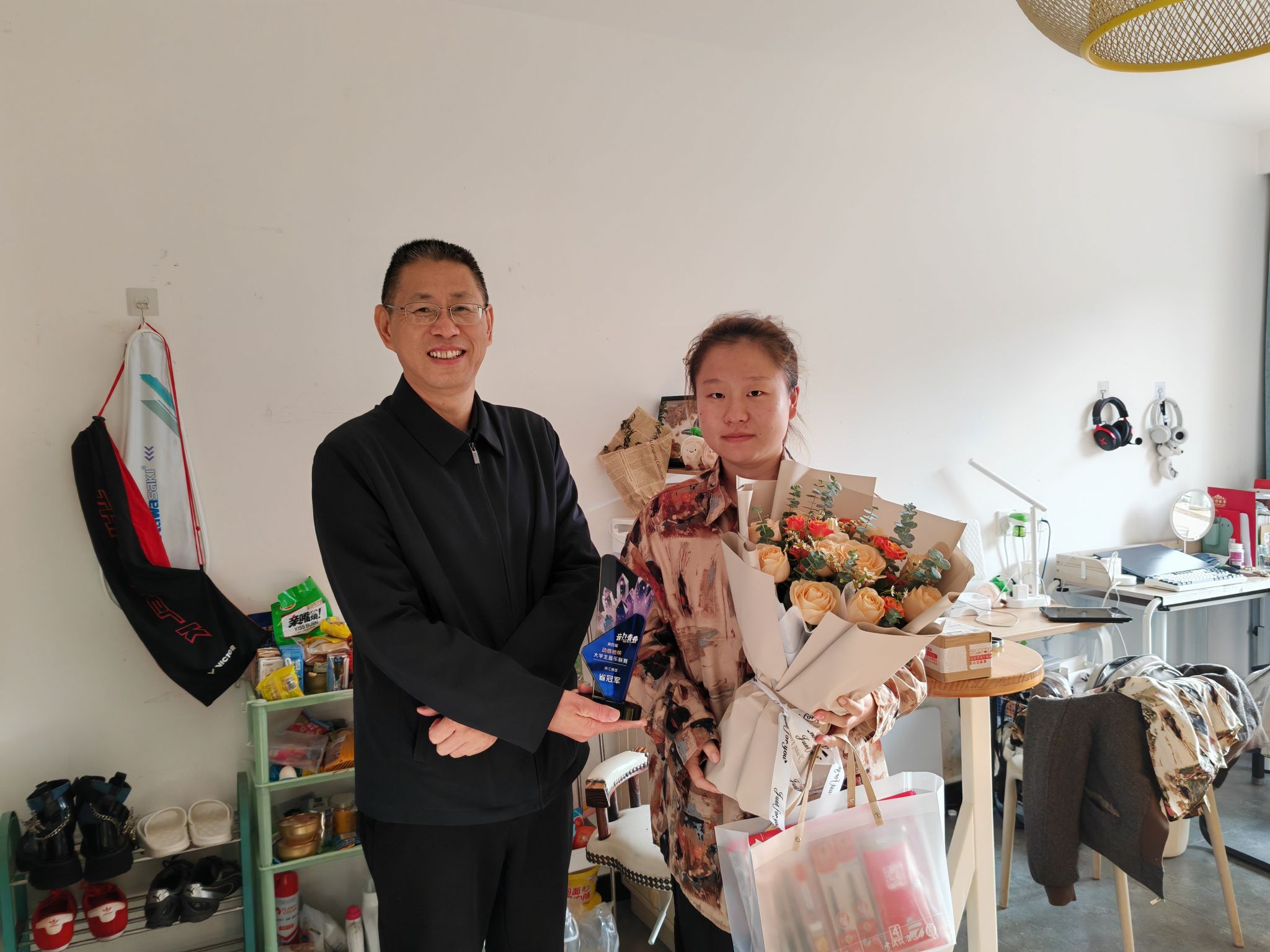 园艺学院党委书记汪和生代表学院向蔡星同学致以祝贺与慰问。汪和生表示,此次夺冠为学校和学院争得了荣誉;既是实力的彰显,更凸显了当代青年积极向上的精神气质;期望其以平和心态参加全国赛,妥善兼顾专业学习与赛事训练,及时汇报参赛成果,充分展现园艺专业学生的风采。