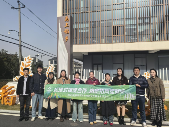 11月27日,研工部相关负责人一行赴杭州余杭开展访企拓岗专项活动,学校研究生辅导员代表陪同走访调研。团队先后走访了禹上稻乡综合体、稻乡共富工坊、余杭水稻科技小院及杭州稻道农业科技有限公司,深入一线了解现代农业发展现状与人才需求。
