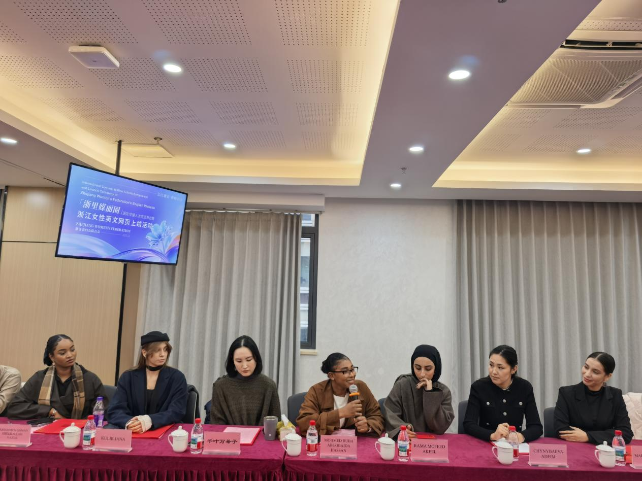 12月12日,以“之江潮声 巾帼图景”为主题的“浙里媒丽圈”国际传播人才座谈参访暨浙江女性英文网页上线活动在杭州成功举办。活动汇聚省内高校国际传播领域的青年代表,围绕浙江女性在“一带一路”人文交流、科技创新、乡村振兴等领域的生动故事展开深入探讨。我校国际教育学院的国际学生应邀参加,并在座谈会上作交流发言。