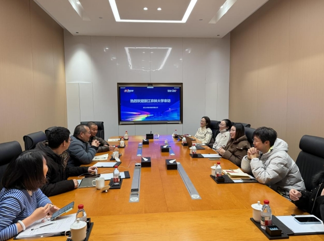浙江大华技术股份有限公司人事部门负责人陆维希女士结合企业展厅实物展品与图文资料,向大家介绍了大华公司的发展历程、核心产品优势、业务布局和社会服务等核心情况。在座谈会中,双方围绕人才培养与输送、科研协同创新、产学研融合落地实践、企业导师聘任与联合培养机制、毕业生实习与就业岗位拓展等议题展开了深入务实的交流讨论,为后续深入合作奠定了基础。