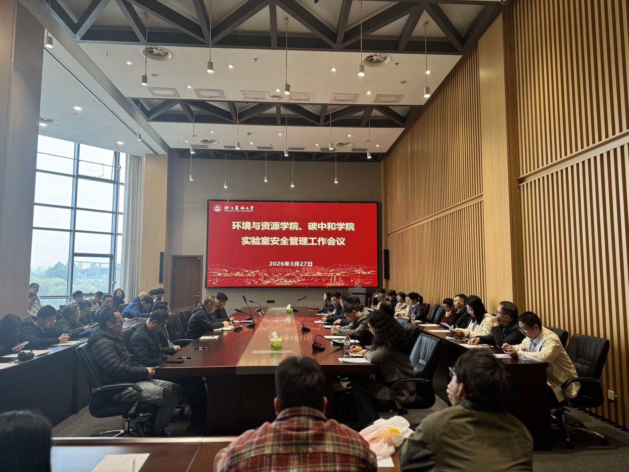 3月27日上午,环资院、碳中和学院召开实验室安全管理工作会议,会议由学院相关负责人主持,院长冯华军、校设备处相关负责人出席,各学科专业负责人、科研团队负责人、科研实验室安全责任人、全体实验员以及协管实验室安全的研究生参会。