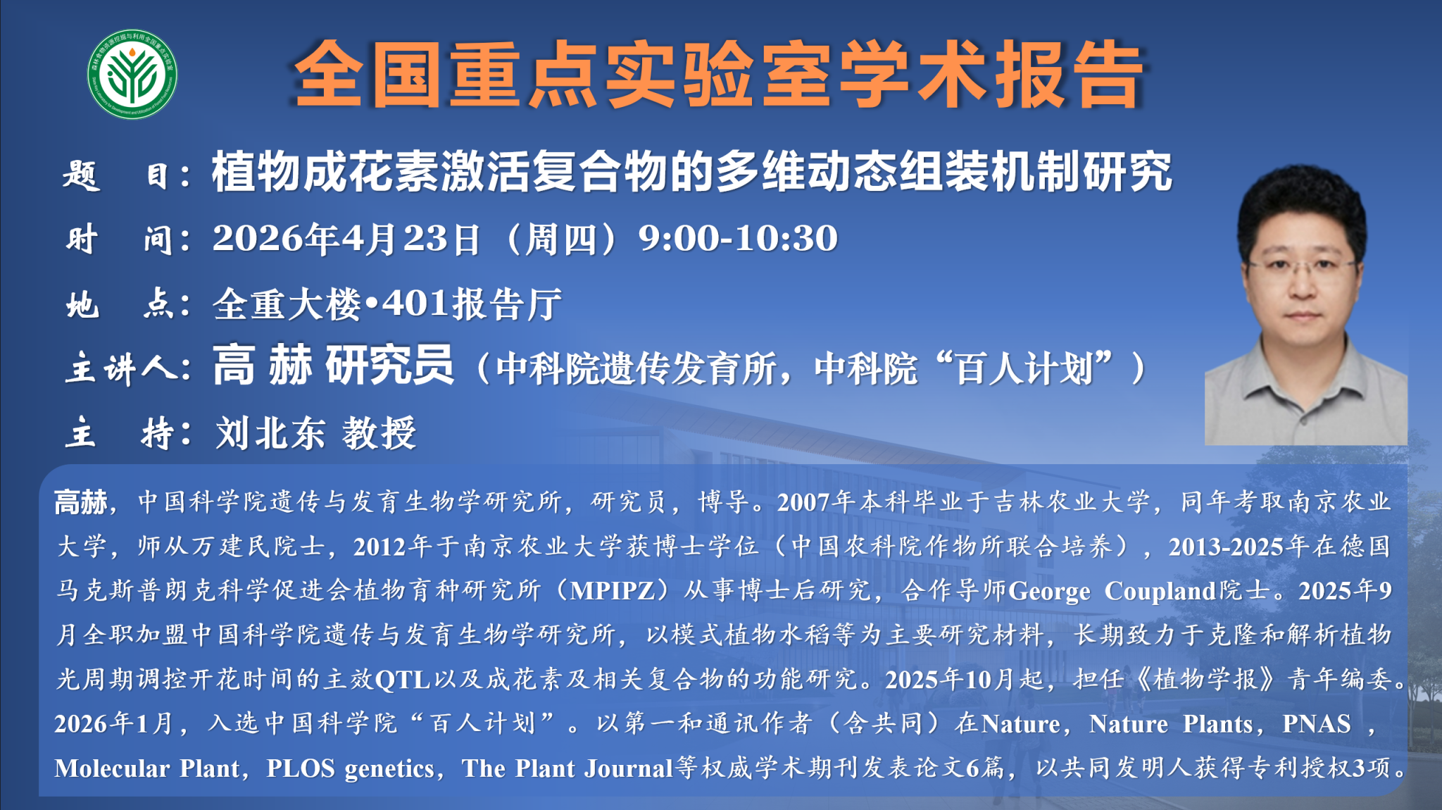 讲座预告:植物成花素激活复合物的多维动态组装机制研究