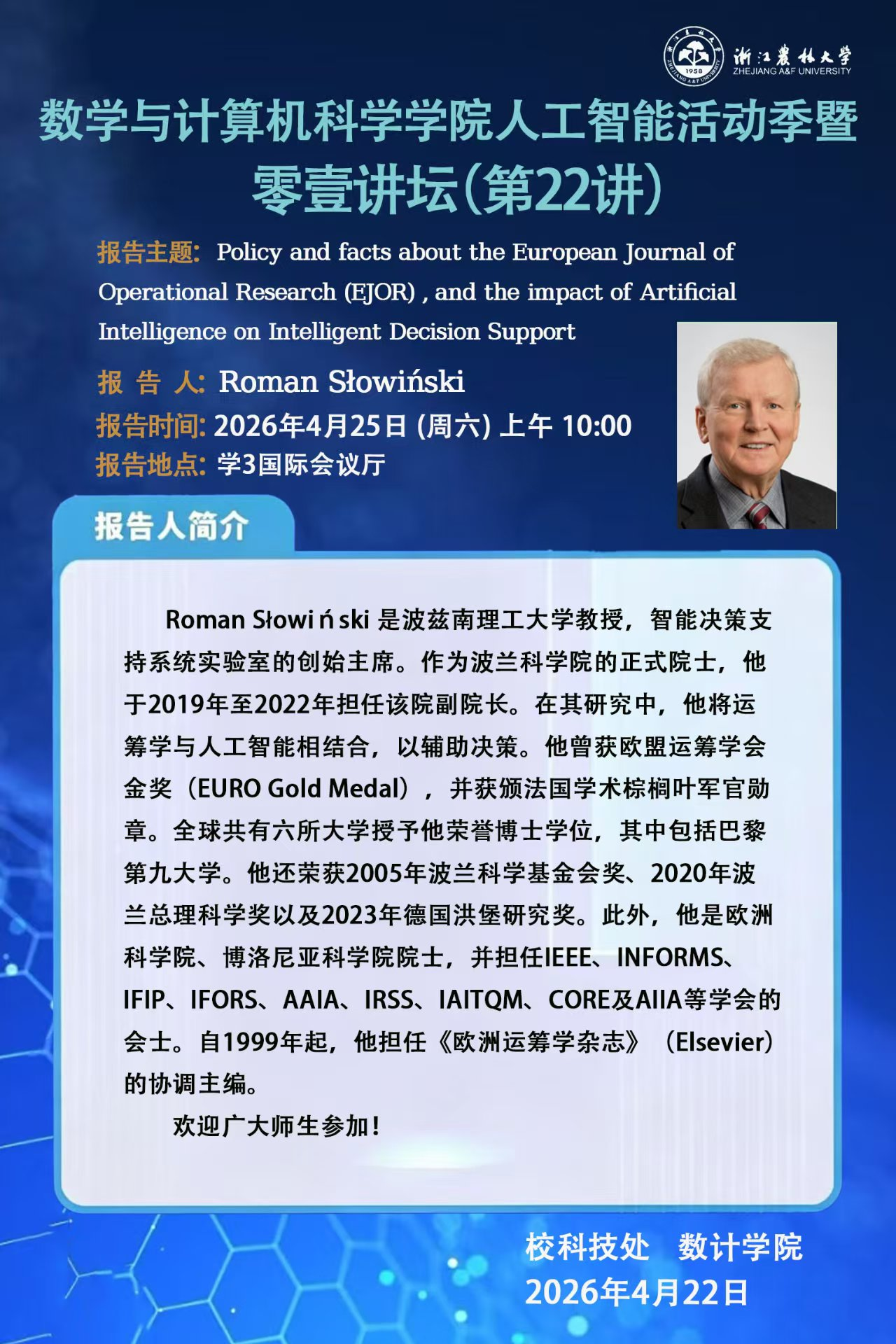 讲座预告:数学与计算机科学学院人工智能活动季暨零壹讲坛(第22讲)