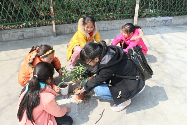 对石小学校长陈国平热情接待了志愿者并简要介绍了学校基本情况。在爱木生态课上,志愿者们的用图文并茂的ppt给该校四五年级学生介绍了植树节的由来、植树的意义、一些常见树木特征与用途等。课堂上,孩子们认真听讲,积极举手发言,参与互动的孩子获得了小奖品,气氛热烈。课下,志愿者们和孩子们一起种植盆栽,体验美化校园的快乐。