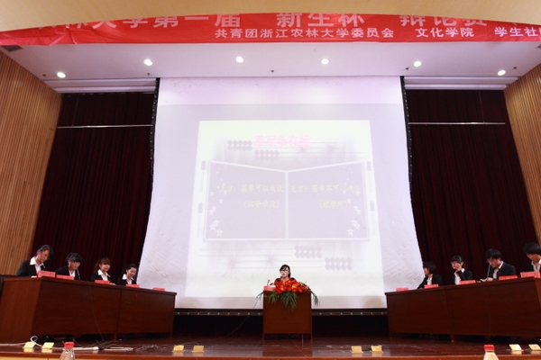 浙农林大新闻网讯 11月28日晚,校第一届“新生杯”辨论赛总决赛在图书馆第一报告厅举行。此次活动由校团委、校学生社团联合会、文化学院主办,校口才协会和文化学院分团委、学生会承办。