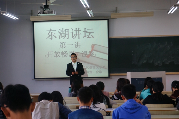 10月22日,由2014级中文系学生主办的东湖讲坛在教二305顺利开讲。