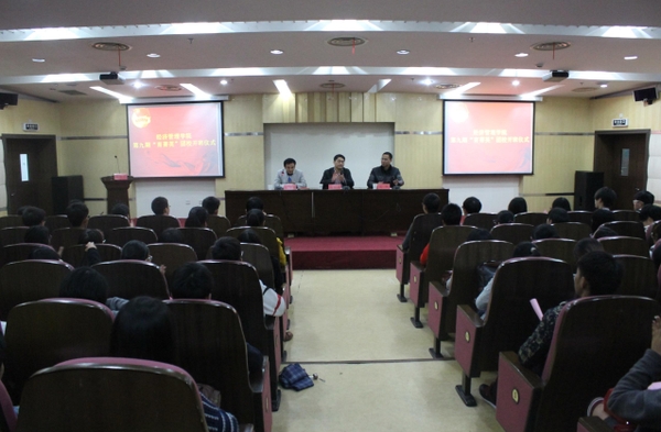 为加强团组织建设,壮大团组织队伍,提高学生骨干的思想政治素养、政策理论水平、创新实践能力和组织协调能力,11月24日晚,经济管理学院于图书馆第二报告厅举办了第九期“育菁英”团校开班仪式暨首场讲座。校团委、学院相关负责人出席会议。辅导员、学生组织骨干以及全体学员参加了大会。开班仪式由学院学生办负责人主持。