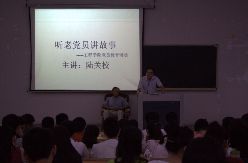 9月18 日下午,工程学院在教2—111举办了以“听老党员讲故事”为主题的党员教育活动。本次活动特邀原组织部部长陆关校老师为主讲人。工程学院各年级学生党员、预备党员和入党积极分子等近200人参加了活动。活动由工程学院学生工作负责人主持。