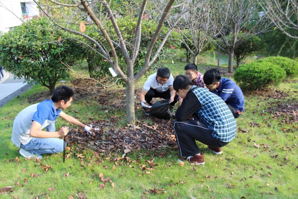 下午3时,志愿者们根据事先分配好的区域,围绕学校教学楼一带的绿地,分组进行养护活动。尽管正直金秋,落叶很多,志愿者们依然抱着十足的干劲,在绿地中清理杂草和扫除落叶,并将垃圾及杂物打包清理。志愿者们团结协作,工作分工明确,成功完成了首次绿地养护任务。
