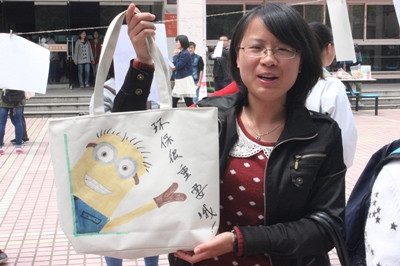 活动期间,志愿者们开展了“今天,你吃素了吗?”倡议活动。经过食堂的学生都积极响应活动的倡议,在诸多菜类中选择素菜,用实际行动响应“环保从不是嘴上说说”这一世界地球日活动的口号。同时,志愿者们还在东湖食堂门口开展了“绿色环保,随心所绘”手绘环保袋活动。活动吸引了大量学生参加,大家都积极参与,以手中的画笔描摹出五彩景象,呼吁绿色环保,以实际行动为节能减排尽一份力,为绿色环保献出自己的一份心。