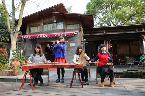 每周五下午四点,艺术团林韵乐坊在东湖茶室演出,主要以演奏竹笛、古筝等传统乐器的形式传达艺术真谛。丝竹管弦声声入耳,传统乐律涤荡心间,展示了古老而又充满生机的独特东方音乐之美。每周五晚八点三十分,艺术团的银杏树合唱团与器乐队将在B区操场边的九歌亭表演弹唱,以吉他演唱的形式带来或流行时尚或经典不衰的歌曲,轻快的节奏,婉转的歌声,每个音符都是青春的赞歌,表演受到了广大师生的喜爱。