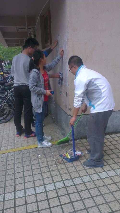 漫步校园,形形色色的小广告随处可见,严重影响了校园美观。志愿者们早早带好工具到达指定地点,利用下午的空闲时间顺利完成了清理活动。