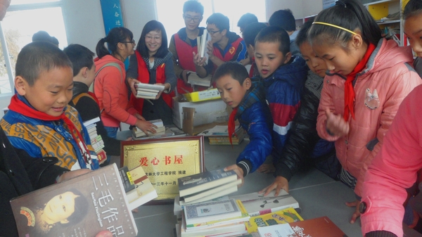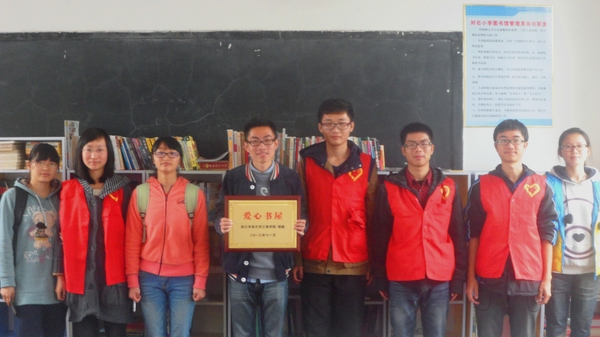 浙农林大新闻网讯 11月24号上午,工程学院青年志愿者服务中心志愿者一行9人,来到临安对石小学,为这里的小学生们带去前期“捐一本书,圆一个梦”活动所募集到的200余本图书及价值500多元的体育用品,并建立了爱心书屋。
