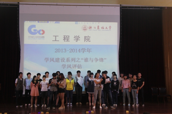浙农林大新闻网讯 10月11日晚,工程学院2012-2013学年学风建设系列之“谁与争锋”学风评估大赛在图书馆报告厅如期举行。工程学院学生工作负责人莅临现场并进行指导,各年级辅导员担任本次评委。