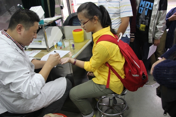 经过前期的宣传,上午10点整,无偿献血的服务台前聚集了许多前来咨询与献血的老师和同学。活动现场,前来参加献血的同学更是排起了长长的队伍。为消除师生们的疑虑和紧张情绪,志愿者们耐心对各种疑问进行一一解答,热情指导师生如何填写献血的基本信息,引导他们接受献血前的一系列常规检查,并再次说明献血的必要条件。在全体志愿者们的悉心帮助下,献血的师生们大都情绪轻松。由于本次献血活动与上次时间间隔相近,部分同学在上次活动中已献爱心,且未到6个月的献血间隔,这些同学未能如愿在本次活动中再次献爱心。然而这种乐于奉献的精神也深深打动了第一次前来献血的师生们。