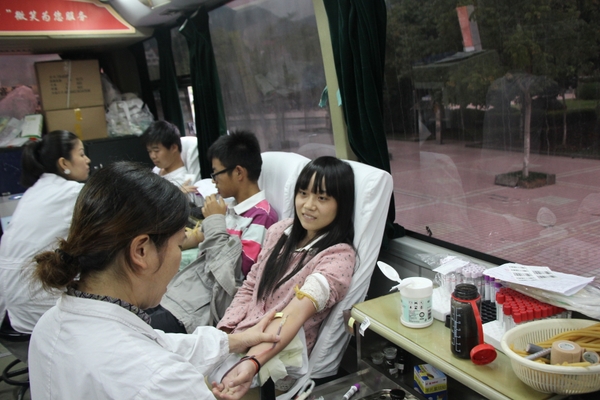 浙农林大新闻网讯 10月15日,工程学院分团委青年志愿者服务中心与浙江省血液中心在东湖食堂门口举办了以“让爱为生命加油”为主题的无偿献血活动。本次献血活动得到了广大师生的积极响应,共有144名师生到场献出了自己的一份爱心。