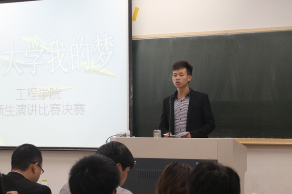 浙农林大新闻网讯 10月18日晚,工程学院“我的大学我的梦”新生演讲比赛决赛在教2107举行。工程学院分团委和学生会指导老师以及2013级新生辅导员担任本次决赛评委。