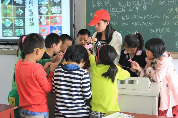 课堂上,志愿者们生动形象地为小朋友们进行了成语讲解,小朋友们积极举手发言,课堂气氛融洽。在折纸课上,小朋友们在七彩的折纸中灌注了自己的童真与梦想,认真完成自己的手工作品。下课活动时,通过一起做游戏,志愿者和小朋友们有了更深一步的了解。