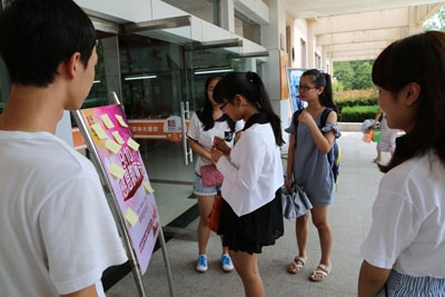 9月10日,校学生社团联合会在集贤食堂门口举办了“感恩教师节”祝福收集主题活动。活动现场校社联学生干部号召同学们将自己对老师的祝福和感谢之情汇聚到活动展板上,用文字表达内心最真挚的感受。活动还吸引了不少新生前来参加。据了解,校社联在后期将把所有祝福在网络平台上统一发布,让老师们看到来自学生们的真情祝福。