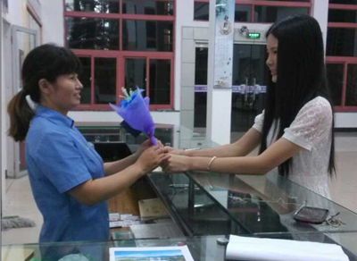 为献礼教师节,9月10日晚,大学生手工DIY协会走访了大一新生寝室楼,将精美贺卡和自制的丝网花送给了宿管阿姨,感谢她们平日里工作的勤恳负责,表达他们对宿管阿姨的感谢之情。接过礼品的宿管阿姨对协会成员表示了感谢,并表示会更加认真地在岗位上保障同学们的日常生活。据了解,该活动是大学生手工DIY协会多年的传统活动,协会负责人表示协会将继续举办该活动,每年都为辛勤付出的工作者送上祝福。