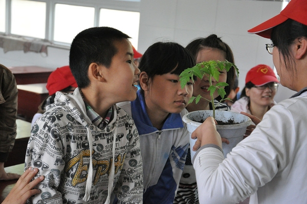 5月4日第一堂课的主题是“植物与我们的生活”。志愿者们拿起向日葵和番茄幼苗向小朋友们介绍植物构造,并详细讲述了植物对人类的贡献,小朋友们认真听讲并表示会保护好身边的植物。第二堂课志愿者通过PPT向小朋友们介绍了我们国家的地震史,地震的破坏性等知识并且结合雅安地震向小朋友们介绍了一些关于地震时逃生的措施,使小朋友们对这些基本常识有了一定的了解。