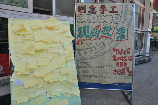 浙农林大新闻网讯 为让同学们更加关注和深入理解光盘行动的意义,同时锻炼学生的动手实践能力和创新创造能力,农学院于近日举行了创意手工餐盘制作比赛。比赛得到了广大同学的积极参与,427名同学通过活动创造利用废弃物,减少浪费。