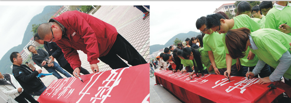 启动仪式上,学生代表宣读了“光盘行动”倡议书。随后,数百名师生员工在横幅上签下姓名,表示要用实际行动践行“光盘”承诺,向“舌尖上的浪费”说“NO"。
