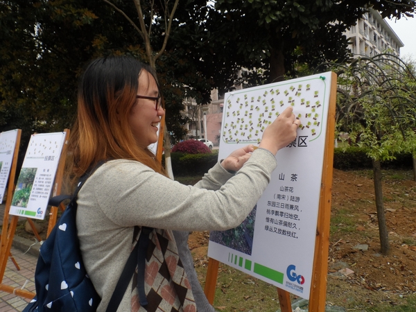 此次活动不仅形式新颖,主题也充满趣味性。同学们纷纷将手中的选票粘在自己认为最具气质的植物的展览牌上,为心目中的“树魁”增加人气。此外,展览牌上也大有文章,它不仅介绍了植物习性、寓意等知识,还附上植物的“靓照”。现场一位参与者说道:“很多植物以前一直有所耳闻,但就是不清楚它们长什么样,这次终于见识了。”最终,工作人员结合此前腾讯微博上的票数和现场的投票数,选出了十大“气质植物”,其中日本晚樱、红枫、银杏名列前三。