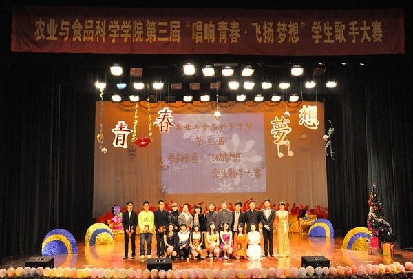 浙农林大新闻网讯 为弘扬优秀文化艺术,倡导现代文明新风,展示灿烂青春风采,塑造学院青年形象,12月18日晚农业与食品科学学院第三届“唱响青春飞扬梦想”学生歌手大赛决赛在活动中心影剧院举行。农学院院长朱祝军等学院领导、校艺术指导中心负责人等光临了本次比赛。