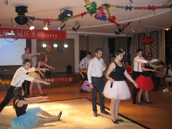 本次party与以往有所不同,节目主持由留学生担任,留学生既洋腔洋调又非常认真的主持,成为party一个特点,也引乐了大家。同时,师生共同准备了精彩的舞蹈,为了这次party,认真排练舞蹈,当留学生和女教师共同表演的舞蹈呈现在大家面前,大家都鼓掌叫好,为本次party增添了不少亮色。蒙古学生纯正的中文演唱,也博得了大家的阵阵掌声。晚会最后,学院领导也与大家同乐,各自高歌一曲,优美的歌声引得了大家的喝彩。