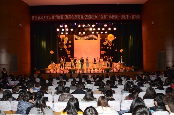 浙农林大新闻网讯 12月9日晚,天目学院第五届学生节闭幕式暨第五届“金榈”杯校园十佳歌手大赛决赛在东湖校区活动中心影剧院举行。天目学院有关领导,校团委及浙江金丰汽车控股集团有限公司、中国移动临安分公司负责人出席了活动,天目学院相关职能部门负责人、各系主任、学生办主任、团总支书记及1000余名师生参加了活动。