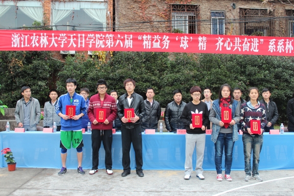浙农林大新闻网讯 12月2日下午,天目学院第六届“系系杯”篮球赛在工程技术系与园林艺术系的男篮冠军之争中落下帷幕。学院学工部、团委负责人,院系团学组织负责人、学生干部代表及各代表队运动员参加了闭幕式。学工部负责人致闭幕词,团委负责人宣读比赛获奖名单并宣布比赛闭幕。