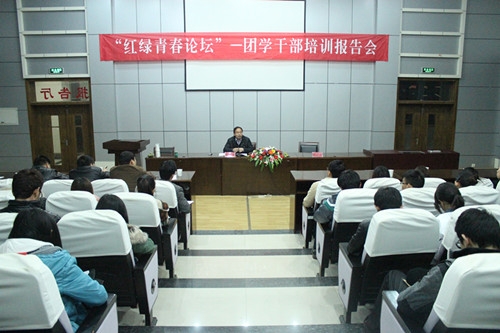 浙农林大新闻网讯 12月6日晚,“红绿青春论坛”第三期——团学干部培训报告会在学11-301报告厅举行。党办、校办主任胡祖吉应邀为学校主要团学干部作培训,校团委主持工作副书记倪建均等校团委有关负责人,各二级学院分团委书记、学生会秘书长及学校主要学生干部参加了报告会。