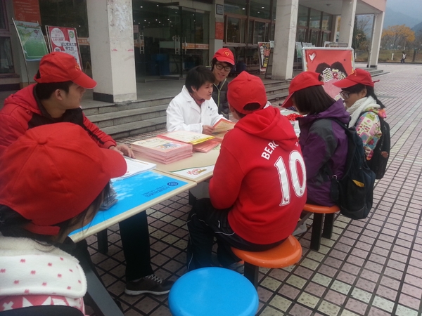 校卫生所医生在活动现场专门设立了咨询台,给学生讲解艾滋病传播方式、预防措施、在日常生活中的注意事项等知识,并一一解答学生们的提问。在校青年志愿者协会的全力协助下,现场还通过佩戴红丝条、拉横幅、设立宣传展板、发宣传单及纪念品等多种方式进行宣传,吸引了周边的同学前来观看与咨询。