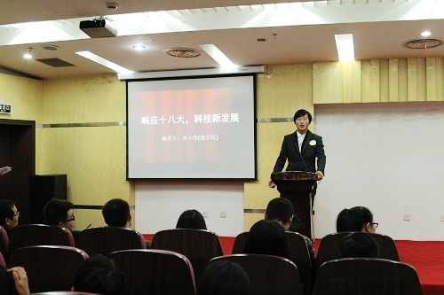 浙农林大新闻网讯 11月25日晚,理学院在图书馆小报告厅成功举办了“响应十八大,科技新发展”主题演讲大赛。本次演讲赛是学院第六届科技节活动之“科技曙光,驻留倾听”的活动内容,经过之前的层层选拔,来自全校各学院的11名选手们入围了当晚的决赛。