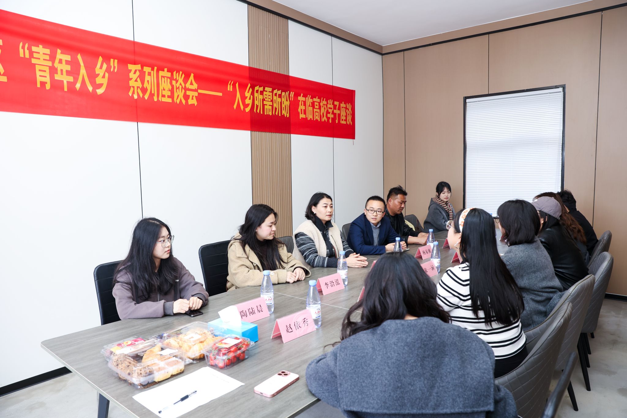 在2026年临安区“青年入乡”座谈会——“入乡所需所盼”在临高校学子座谈现场,同学们认真听取了崂山村书记关于村庄发展现状、产业特色与未来规划的介绍,并结合自身设计学专业优势,围绕乡村文旅发展、业态升级、品牌打造等方面踊跃发言,提出了一系列切实可行的建议,得到了村委和与会人员的积极回应。