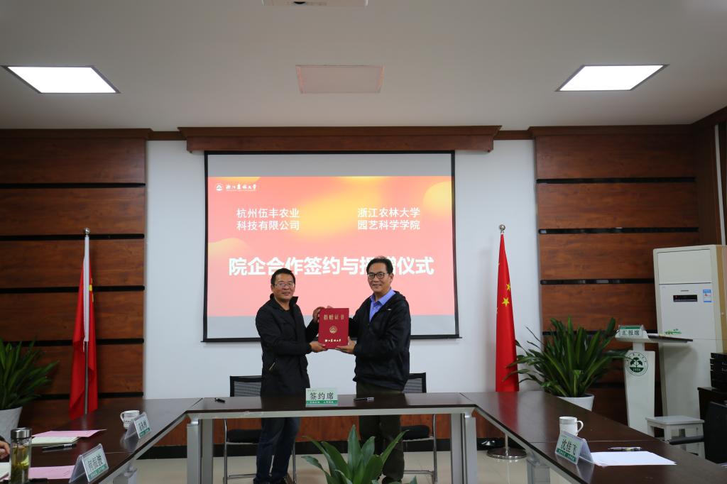 11月2日,学院在学15-612举行了与杭州小太阳农业科技有限公司、杭州伍丰农业科技有限公司的“党建+产学研”签约和捐赠仪式。学校校友办主任、教育基金会秘书长杨黎明和学院领导班子、教师代表等参加仪式,仪式由党委书记何振波主持。